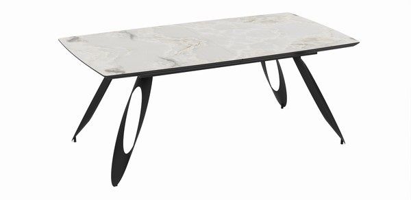 Разтегателна трапезна маса MERKUR – бежов мрамор и черно, с механизъм от 190 см до 250 см, стилен дизайн и здрава конструкция за модерна трапезария