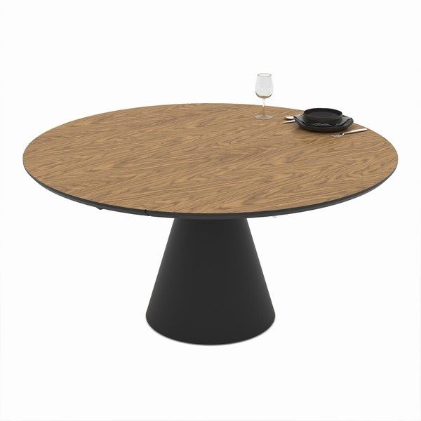 Кръгла разтегателна трапезна маса YANDAN – меден дъб и черно