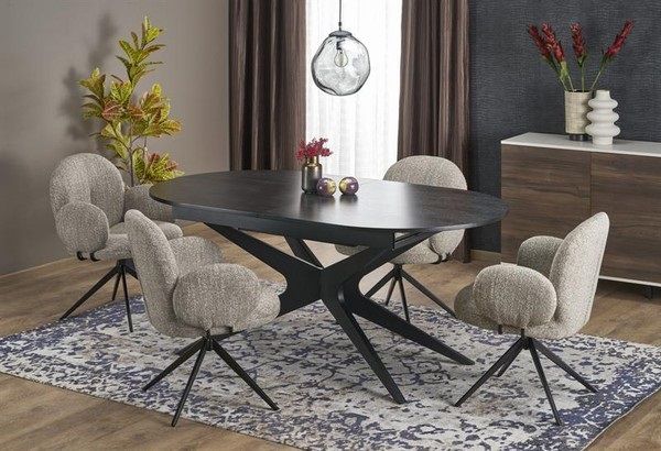 Разтегателна трапезна маса SANDRO в елегантно черно е практично и стилно решение за трапезария, кухня или дневна. Съчетавайки чист, модерен дизайн с функционалност, тя предлага удобен разтегателен механизъм, който позволява лесно да увеличите дължината на масата от 180 см до 240 см, осигурявайки повече пространство за хранене при гости и семейни вечери.